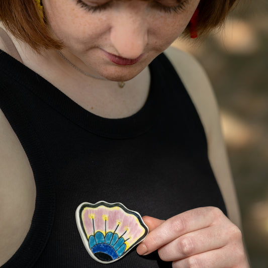Limited Edition Handmade Ceramic Brooch - Flower Design